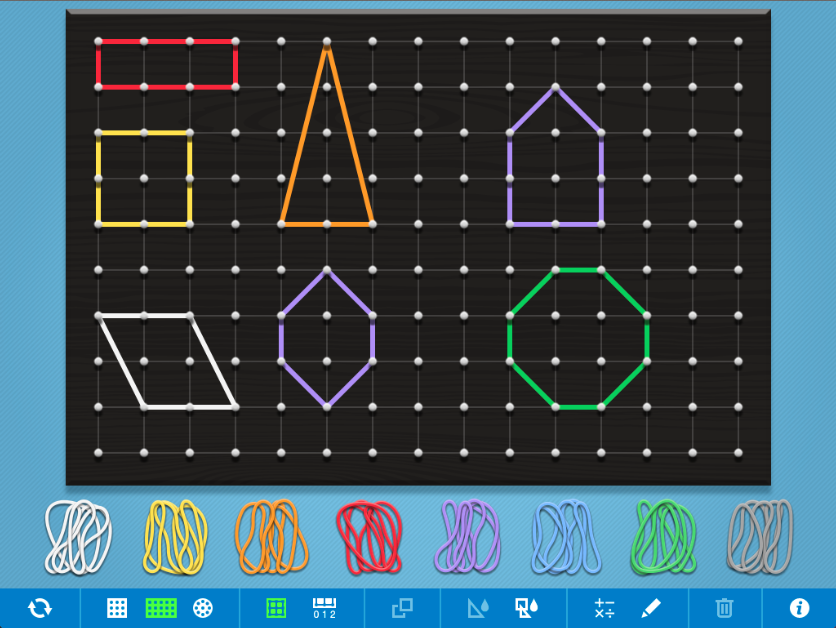 Create a variety of 2D shapes using the Geoboard app. You have also got the option to write the features of the shapes using the pen function.