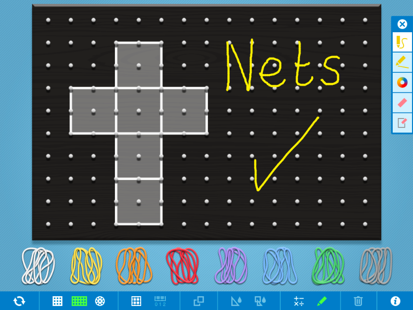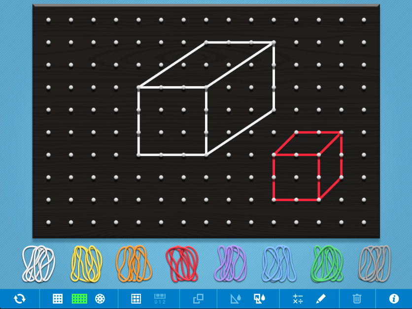 Create a variety of 3D shapes using the Geoboard app. You have also got the option to write the features of the shapes using the pen function.