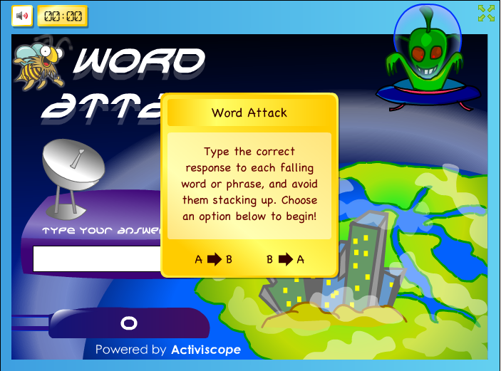 This game is called word attack and give children the opportunity to practise the spelling of some ‘ay’ words.