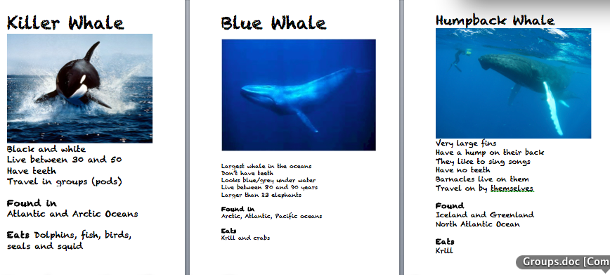 A great opportunity for your Foundation children to learn about non-chronological reports and whales. There are two types of whales (baleen and toothed) but many different species of whales for the children to learn about and research. The children love learning about whales and it captivates both boys and girls. To download the Powerpoint Click Here. To download the whale fact sheets Click Here. To listen to whale calls Click Here. To learn more about whale from the WWF Click Here.