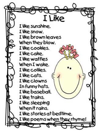 You children can create a poem just like this one and and their own twist by writing the things they like.