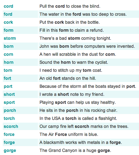 A few ‘or’ words used in context for the children to read.