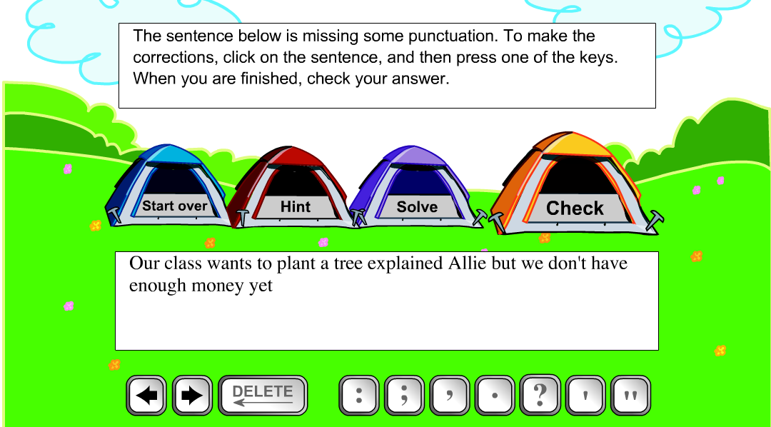 Drag punctuation marks into place. Another activity involves writing your own sentences.