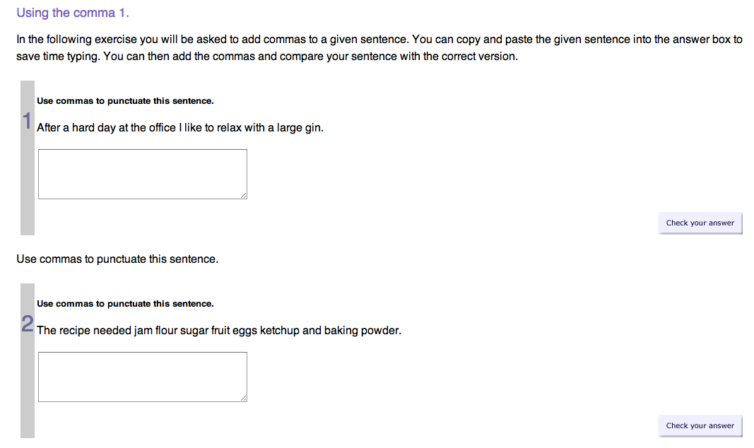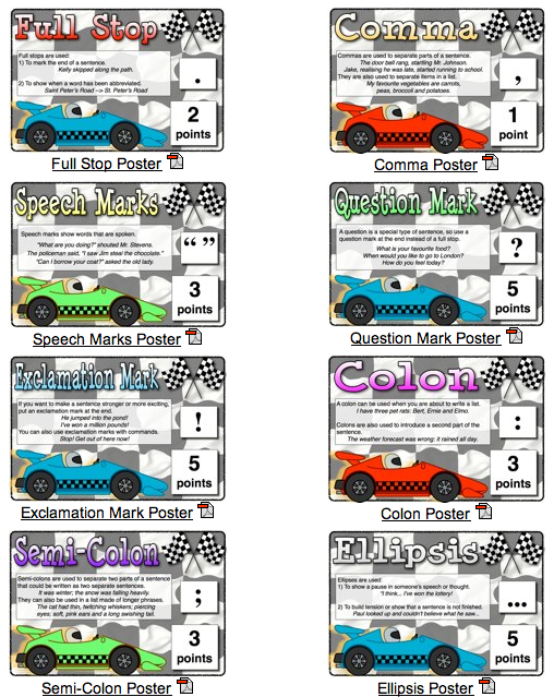 Check out this great punctuation game for kids. The children will have fun completing the grammar practice exercises that help students learn about important English language punctuation such as the full stop, question mark, comma, apostrophe, exclamation mark and inverted commas.