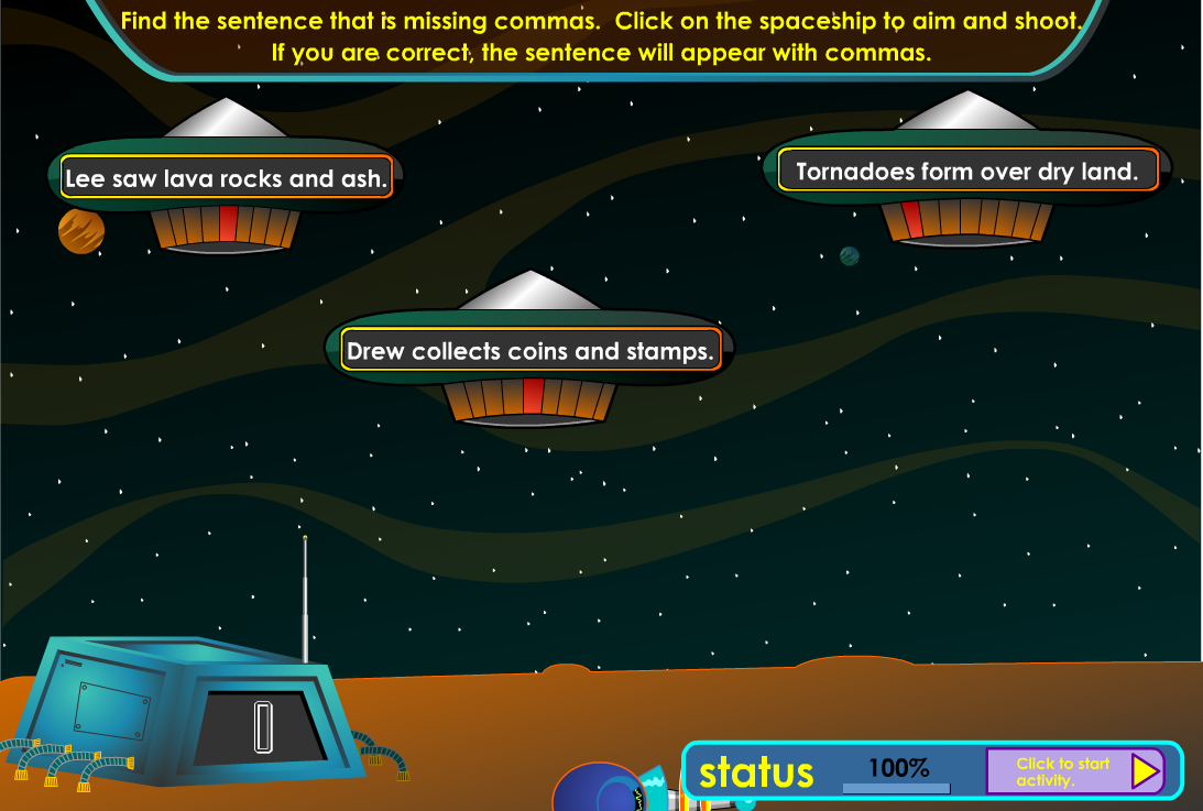 In the punctuation game, the children must locate the sentence that is missing a comma.