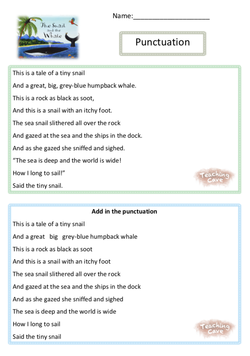 In this resources your children are challenged to add in the punctuation by referring to the original text. This is great for those children who are beginning to reflect on feedback to improve their work.