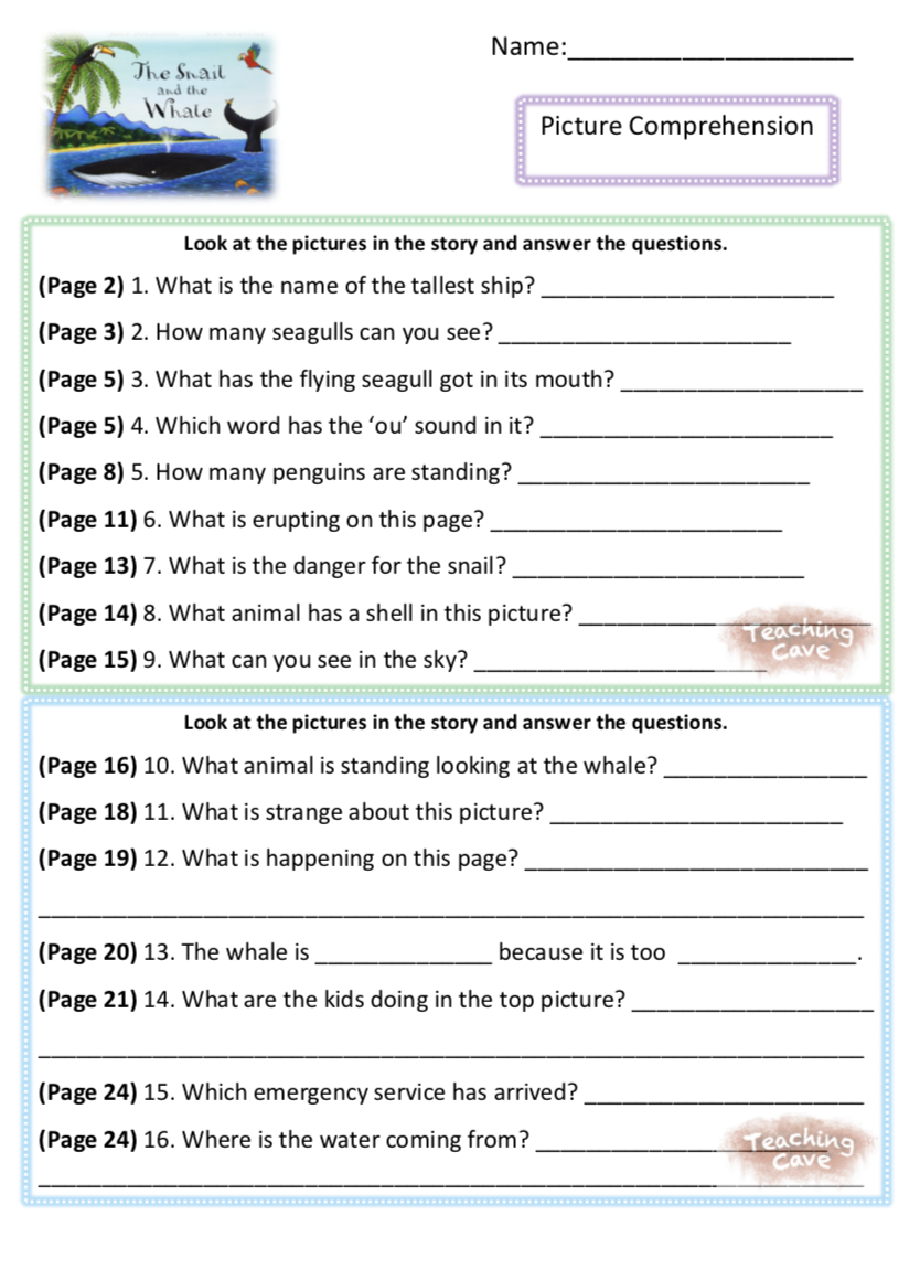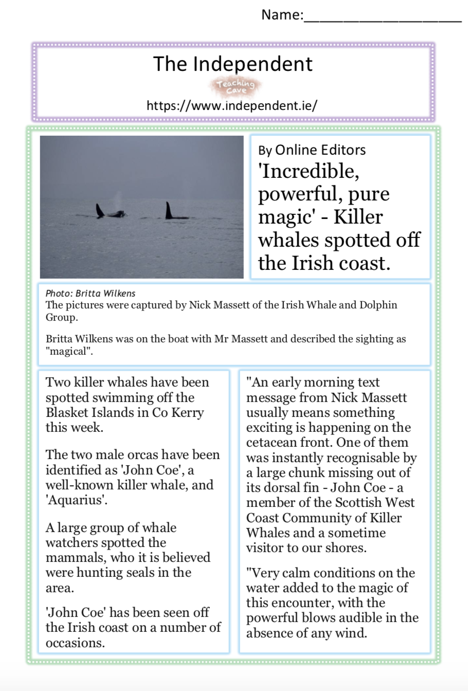 There are different levels to this comprehension which challenges the children to find out more about whales and more specifically orcas. Ironically, orcas aren’t even whales.