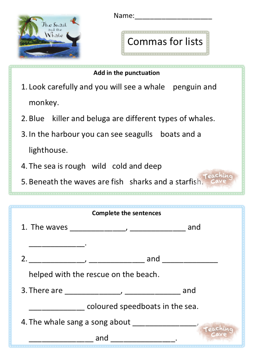 This is a differentiated resource that encourages your children to add in the commas where appropriate and then create their own list using the story vocabulary.