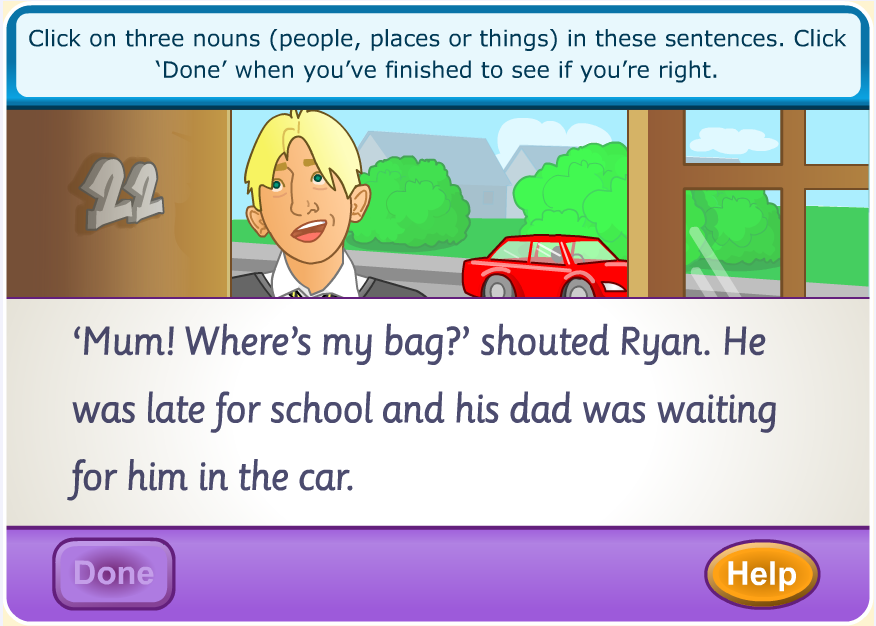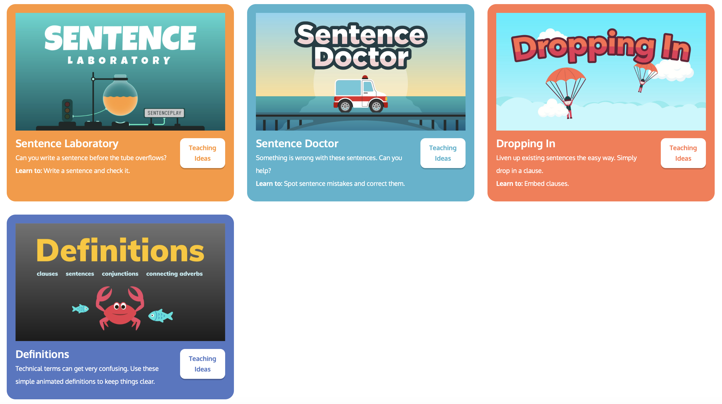 This links you to a fantastic range of resources to help your children to develop their understanding of nouns, verbs, adverbs, adjectives, punctuation, sentences and spelling and more by watching video clips and completing activities.