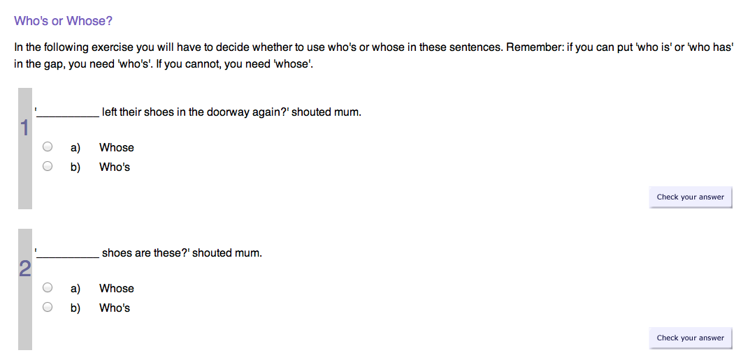 This is a great grammar resource to encourage your children to recognise when they should use ‘whose’ or ‘who’s’.