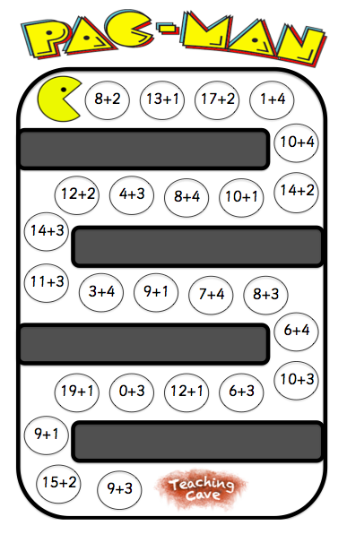 The children will get into pairs. The first child will start at the Pacman and will try to answer all the sums to reach the Teaching Cave logo. The second player will choose a ghost and follow player 1’s Pacman. Every 5 seconds, player 2 will move their ghost to the next word in an attempt to catch the Pacman.