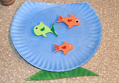 The children will each receive a paper plate and colour it in blue. They will they create fish using card or tissue paper. Depending on the number you are working on, instruct the children to include an amount of fish.