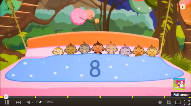 As the children pop the balloons, a voice calls out the number. If the children select the wrong number the girl says, “Oops!” and they must try another number.