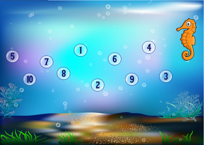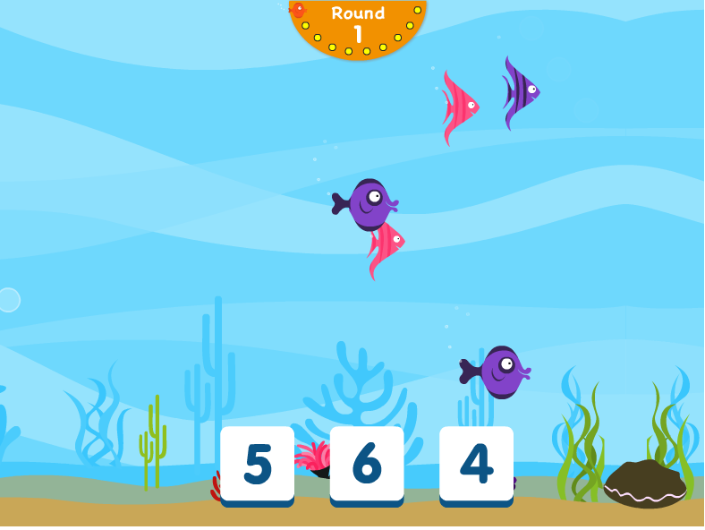 The children must count the fish and select the correct amount. When a child hovers over the number, it tells them the number aloud.
