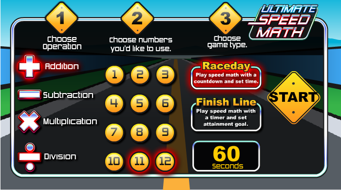 Choose the operation and numbers then try to answer the sums as quickly as possible to win the race.