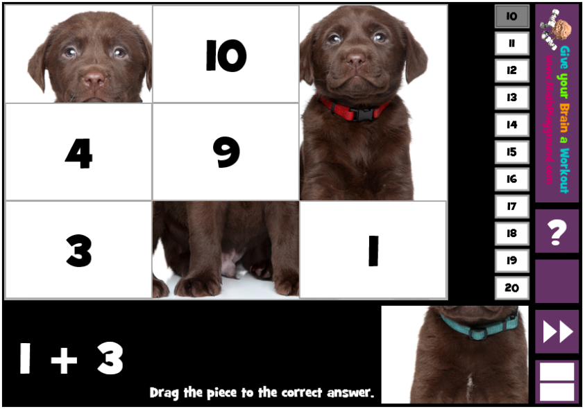 In this activity, your children can set the maximum amount they wish to work on. Sums will be displayed and the children must drag the puzzle piece over the correct answer to create a picture.