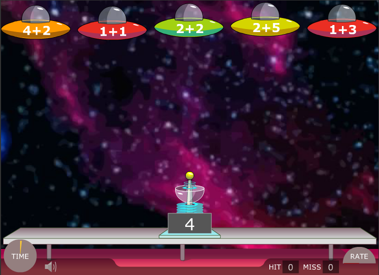 In this game, your class must match the total to a sum by shooting the alien saucers. This activity is timed to help children develop a quicker recall. You can also select the minimum and maximum number you want to work between.