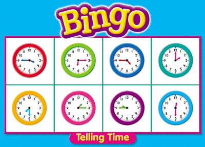You give each child in the group 1 or more cards and they must listen carefully to what others are saying. One child starts by saying, “I have GO, who has quarter past 8?” The cards follow a sequence. The first child to flip all their cards wins. To make it fair the teacher can have the final STOP card.