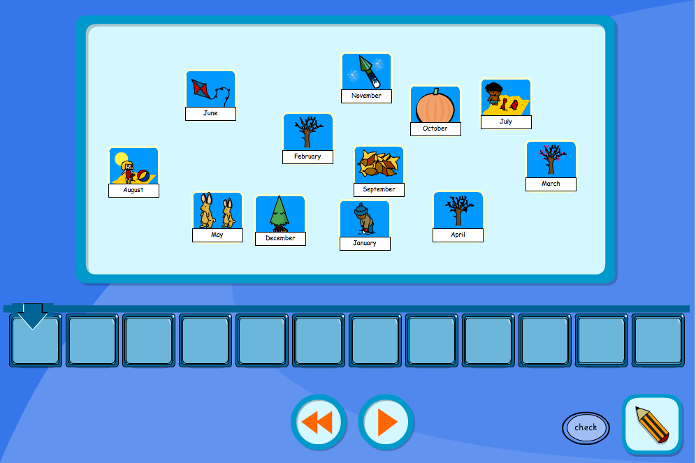 This is another learning game for the months of the year. Once the image is clicked, the month is spoken to help the children identify the month. They must then place the months in order.