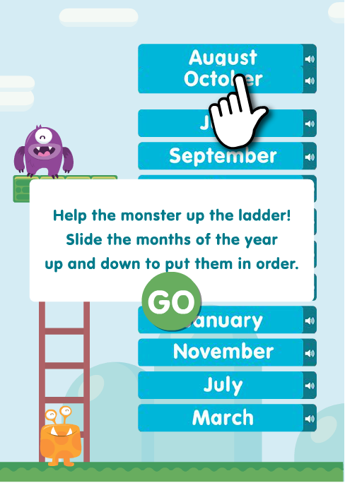 Your Foundation Stage children must slide the months in to order to help the monster climb the ladder.
