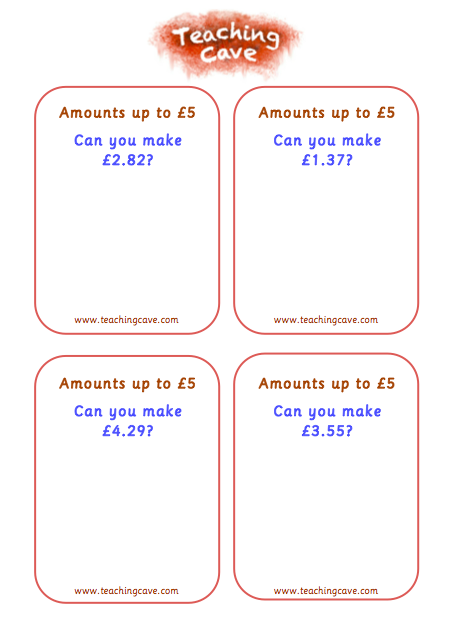 If you are looking for amounts greater than those given, click the image to download a word document that you can adapt to suit your class and ability levels.