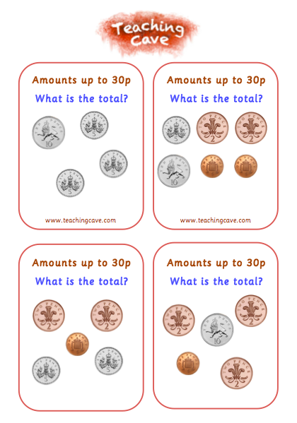 This resource works with 10p, 5p, 2p and 1p coins and the amounts are all below 30p.