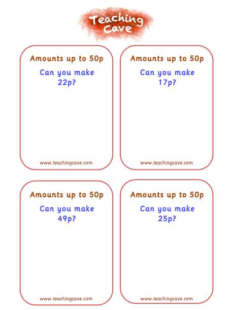 This resource gives your children practice at creating different amounts up to 50p in a practical way.