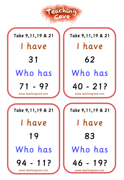 Subtraction - I Have Who Has?