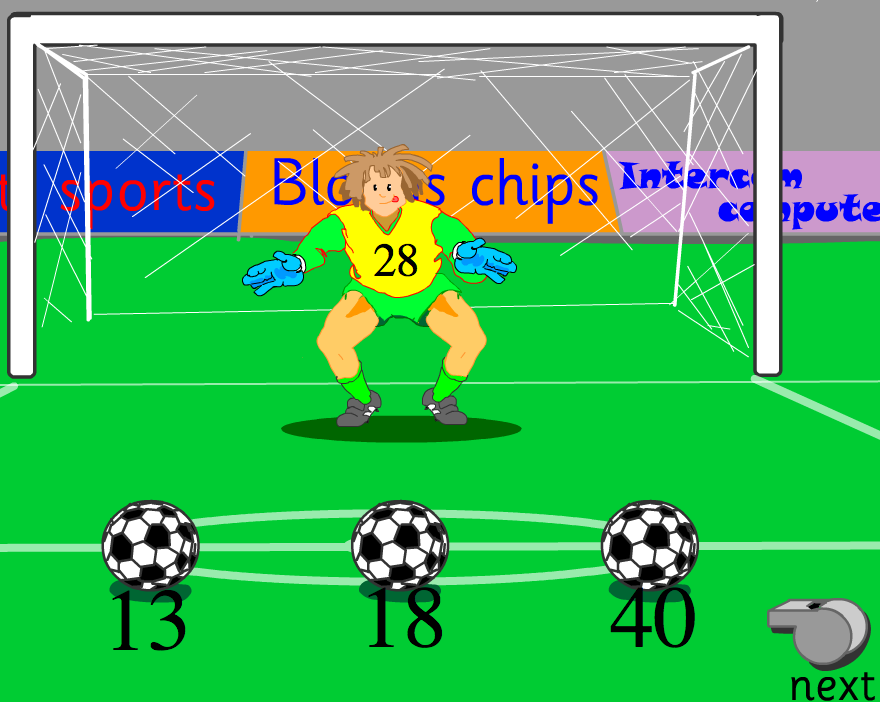 Once the ball goes into the net the children must select ‘next’.