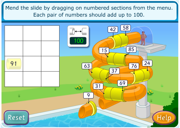 Your children must create number pairs to fix the slide.