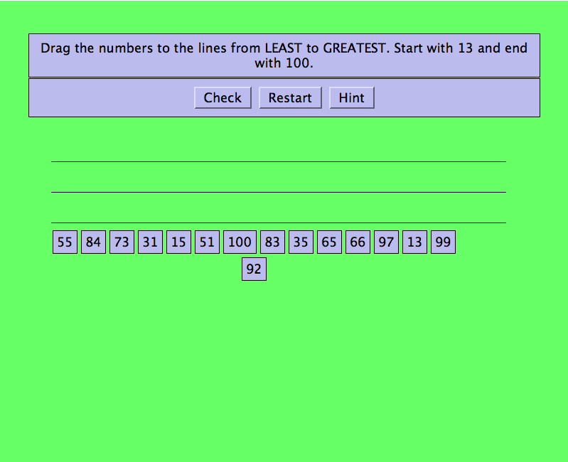 You must select and order the numbers consecutively to progress to the next stage.