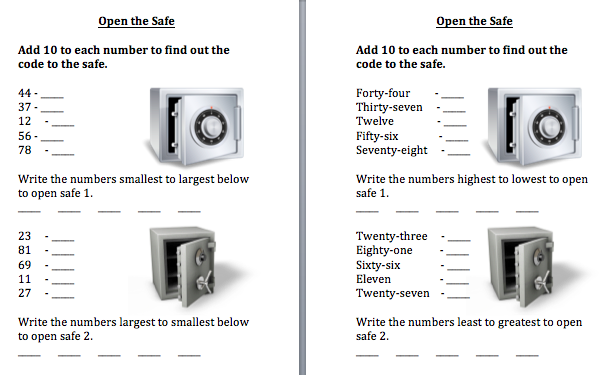 The children must add 10 to the numbers to find out the code to unlock the safe.