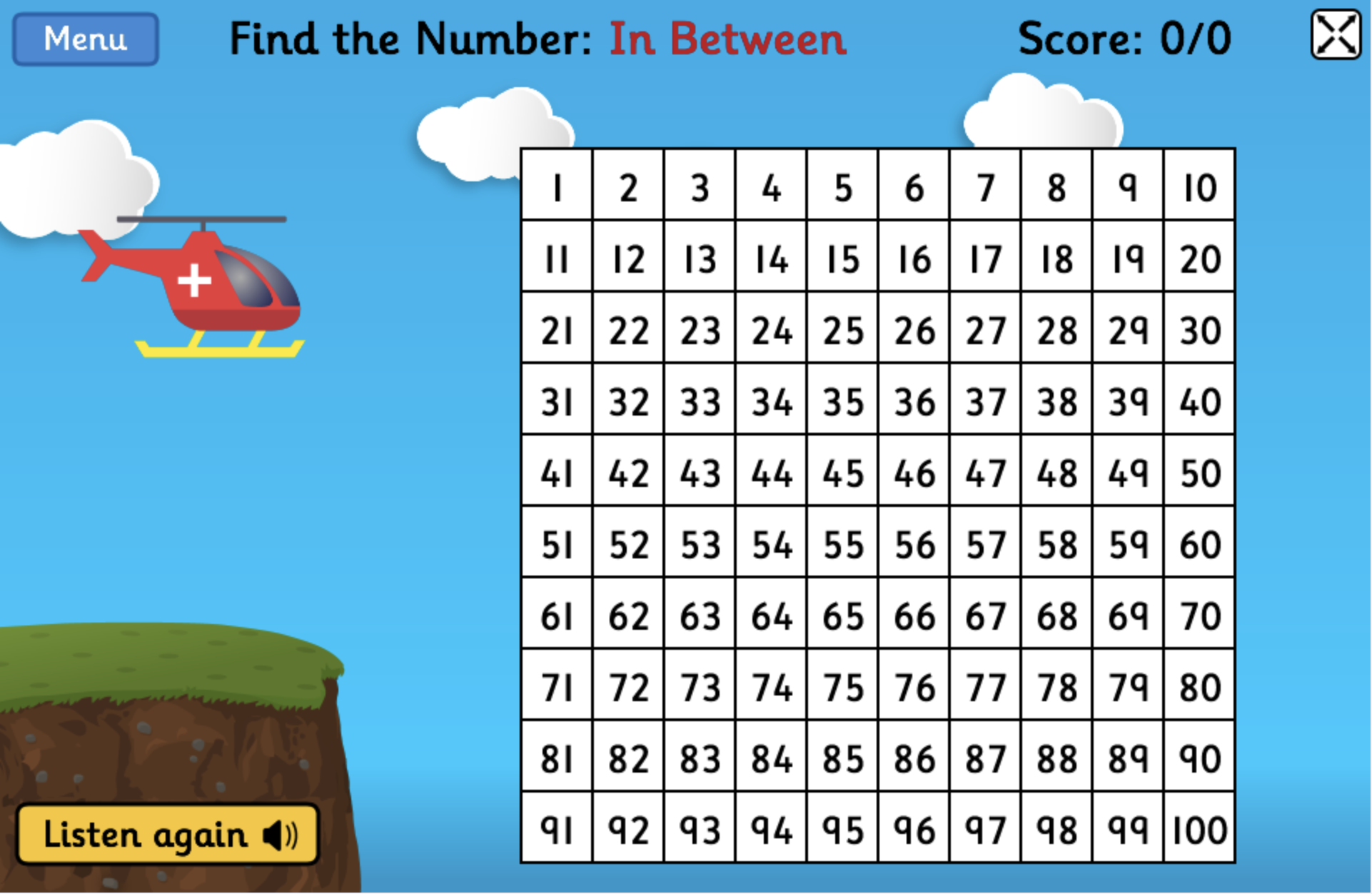 In this game, the children will work on subtracting 10 from numbers up to 100.
