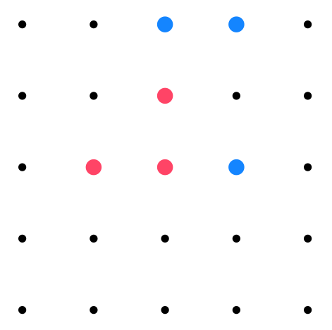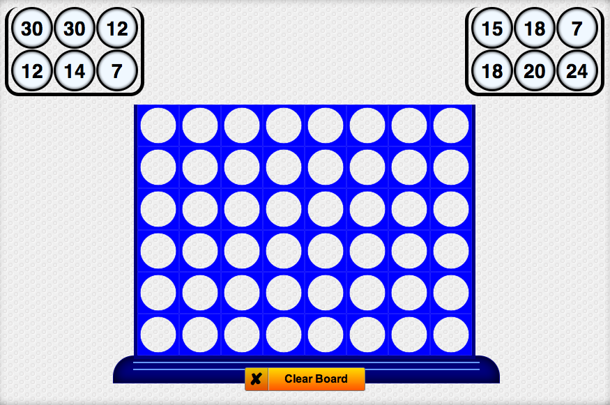 Playing duo: Each player has a box of counters to choose from. Take it in turns to drop a counter into the game board. The winner is the first to line up four numbers with a common factor (other than one).