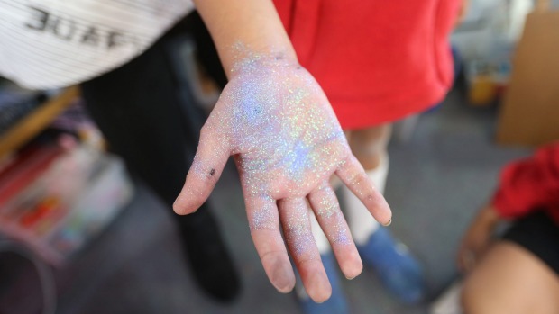 Collect as many different colours of glitter as you can. Split your class into groups and allow each group to put a different colour of glitter onto their hands.