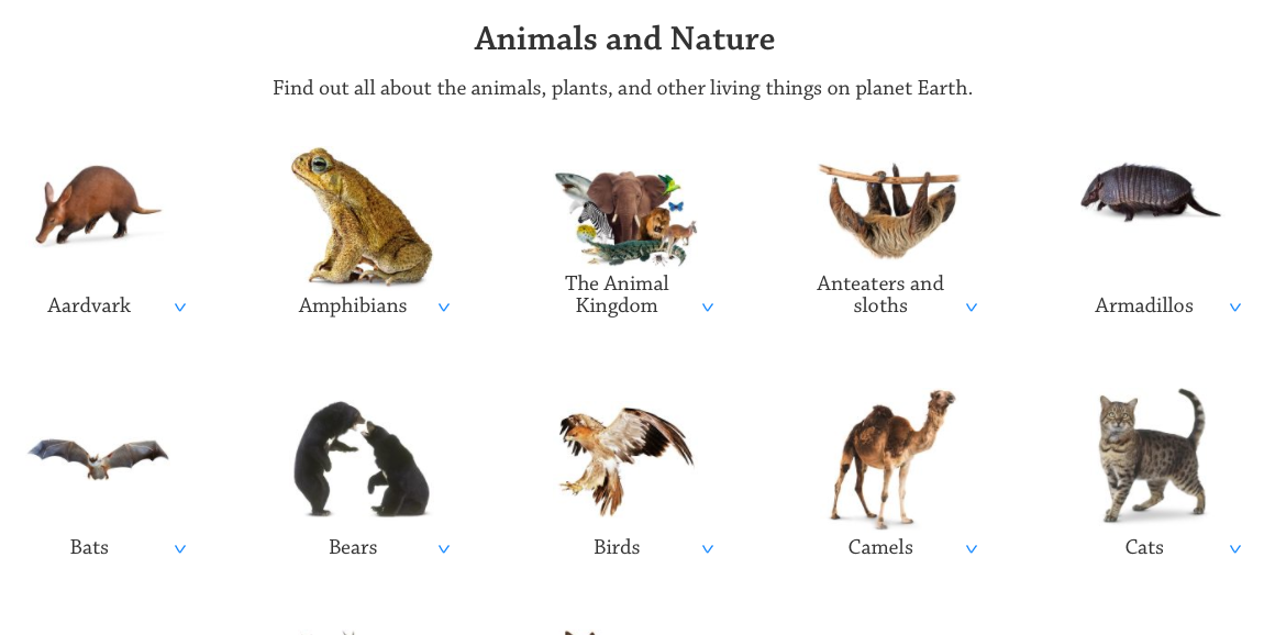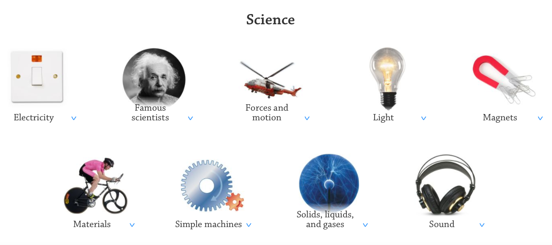 This resource highlights a variety of different areas of science that your children can explore. They simply choose an images and learn more using the different text, images and interactive resources.
