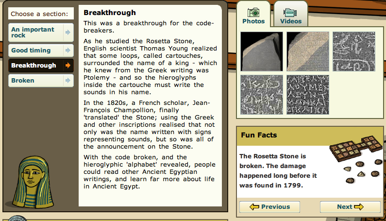 This resource is fantastic when learning about Ancient Egypt. The site is broken down into sub categories to gain particular knowledge. There are facts, stories and images – everything to support accurate and relevant learning.