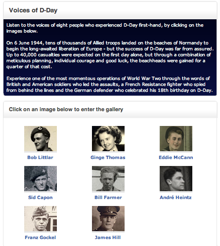 Listen first hand to the people who experienced D-Day. The clips have been broken down into sections for easy navigation.