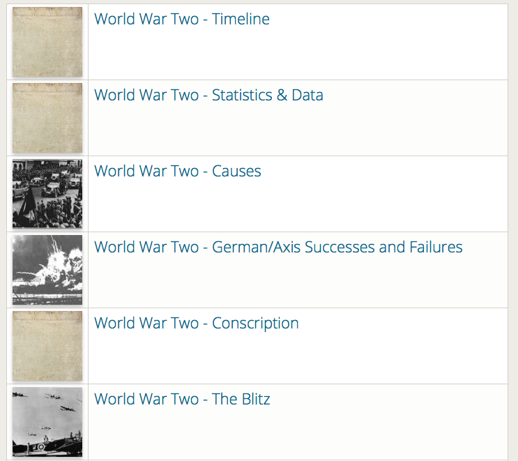 A fantastic World War 2 collection of resources that have been broken down into sub-categories for easy navigation and reading.
